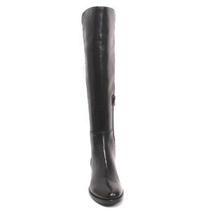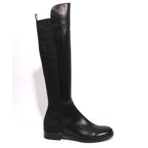 ITALIAN Black Leather Stretch Zip Knee High Boots