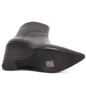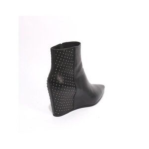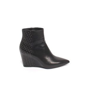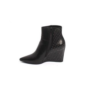 ITALIAN Black Leather Studded Pointy Wedge Boots