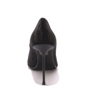 ITALIAN Black Velour Leather Point Metal Heel Pump