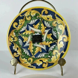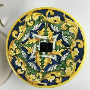 MADE IN ITALY 8” PLATE (S) CERAMICHEITALIA HANDWORKED DISHWASHER SAFE MADE IN ITALY GORGEOUS DESIGN VERY COLORFUL BEAUTIFUL ACCENT PLATE FOR YOUR TABLE SCAPE IT COULD BE USED FOR DESSERTS APPETIZERS SALADS COLORS OF BLUE WHITE GREEN YELLOW AND GOLDEN YELLOW