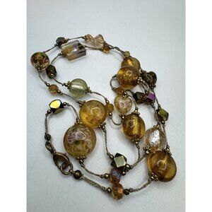 ITALIAN GLASS BEADS MURANO ART GLASS FOILED CARNIVAL NECKLACE 30" LONG