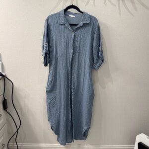 ITALIAN LINEN BUTTON-DOWN MIDI DRESS - NEW
