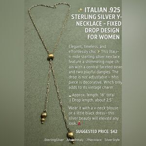 💎 ITALIAN .925 STERLING SILVER Y-NECKLACE – FIXED DROP DESIGN FOR WOMEN