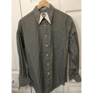 ITALO MONDO Sz 15 1/2 32/33 MEN'S BUTTON UP DRESS SHIRT FRENCH CUFFS Black White. Condition is Pre-owned. Shipped with USPS First Class Package.