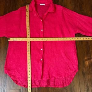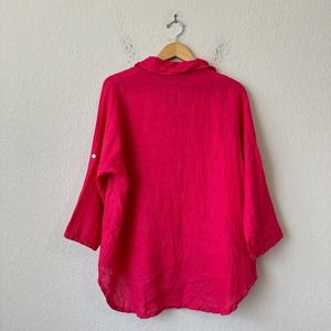 ITALY MADE 100% Linen Roll-Tab Sleeve Gauze Button-Up Shirt in Hot Pink Sz 2X W7844