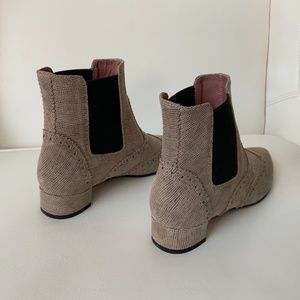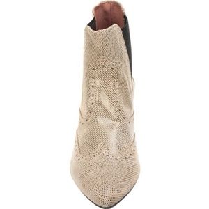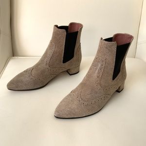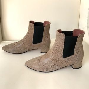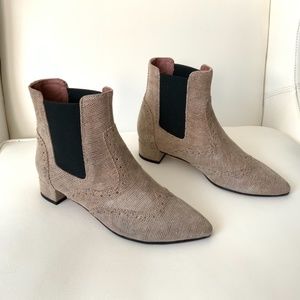 Summit Womens Adella Camel Exotic Snake Animal Print Nude Tan Beige Sand Leather Black Side Chelsea Bootie Block Heel Poined Almond Toe Fashion Dress Classic Cassual Streetwear Boots
