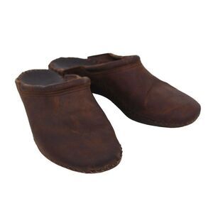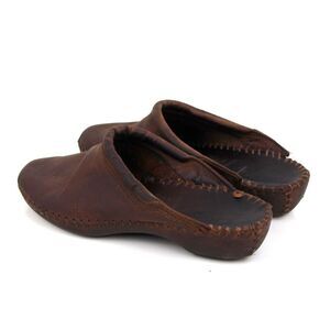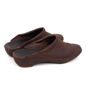 ITALY NATURAL SPORT BROWN GENUINE LEATHER LOW HEEL SANDALS SHOES MULES SZ 8M