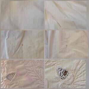 - pink discoloration mostly near the waist; broken lace panels; brown stains (pic 8)