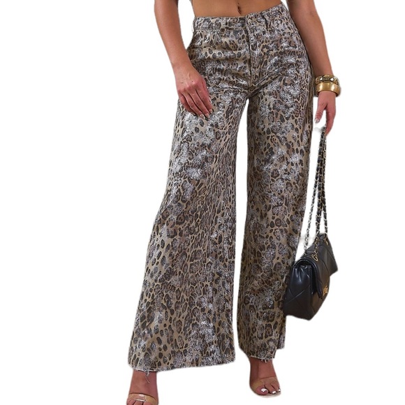 ITOO MOCHA Brown, Tab, Silver Metallic Leopard Wide Leg Pant