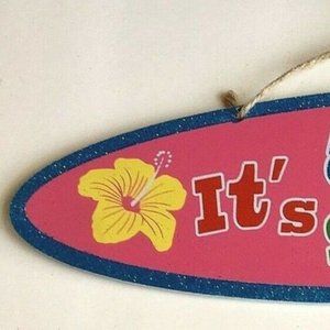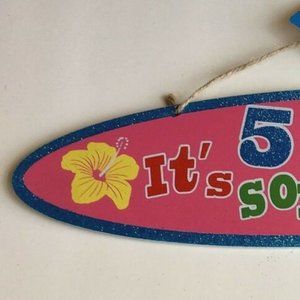 IT'S 5 O'CLOCK SOMEWHERE Hibiscus Wood Sign Luau Tiki Bar Wall Island Decoration