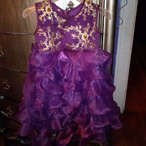 Beautiful Purple💜 💜 & Gold 🪙 🪙 Ruffle Flower Girl Princess Dress, Size 6/7 For Weddings, Pageant Party or Sneaker Ball Gown, or Birthday
