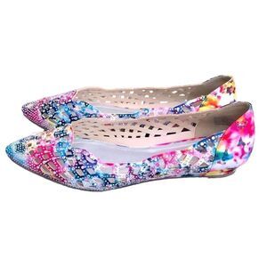 IT’S OK Gorgeous Lattice Floral and Rhinestone Pointy Toe Ballet Flats