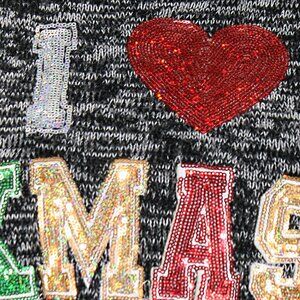 I Heart Xmas alphabet letters in silver, red, green and gold sequins