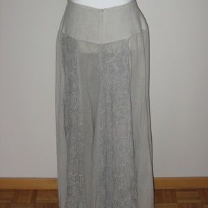 IVAN GRUNDAHL Greige Cotton Women's Long Skirt w/Crinkle Floral Design Accent. Size: 40. 95% Cotton, 5% Crinkled PE. Side Zipper. EXCELLENT CONDITION!!