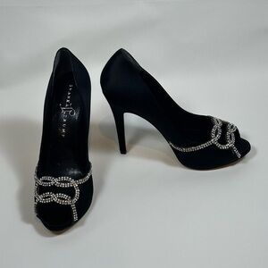 IVANKA TRUMP 4 1/2 inch heel Elegant Black Satin Heels with Rhinestones Sz 8.5