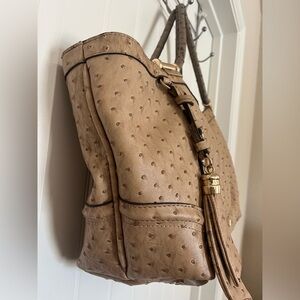 IVANKA TRUMP Beige Faux Ostrich Vegan Leather Shoulder Bag