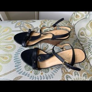 IVANKA TRUMP Black Leather Wedge Heels Shoe Sz 10M