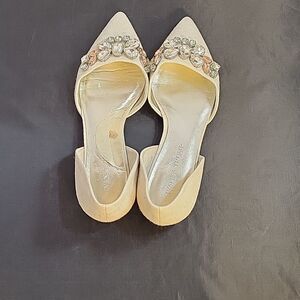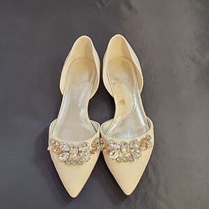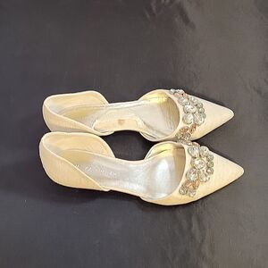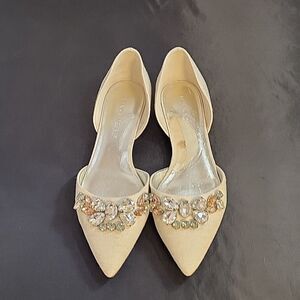 IVANKA TRUMP D'ORSAY JEWEL EMBELLISHMENTS DETAILS TOP POINTED TOE FLAT SIZE 61/2 COLOR BEIGE MADE WITH ALL MAN MADE MATERIALS THIS ITEMS IS PRE-OWNED EXCELLENT CONDITION WITH ONLY LIGHT SIGNS OF WEAR IF ANY CHECK THE PICTURES (FYI ONE OF THE SHOE HAVE A SMALL DAMAGE IN THE INSIDE OF THE SHOES CHECK THE PICTURES