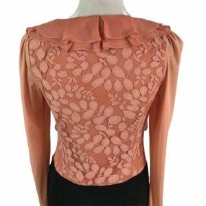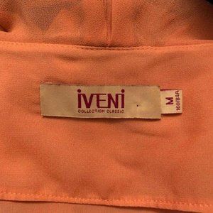 IVENI Peach Black Lace Top Ruffle Neck Front Pockets A Line Party Dress Womens M
