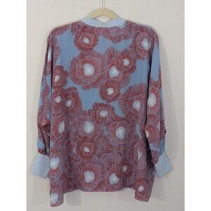 Elevate your wardrobe with this stunning blouse from the IVI collection. Made from 100% silk, this light blue blouse features a beautiful poppy floral pattern that is perfect for any occasion. The V-neckline and long sleeves add a touch of elegance to the blouse, making it suitable for brunch, old money, or preppy themed events.