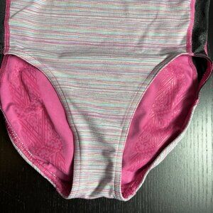 IVIVVA Girls Kids Size 10 Pink Striped Sleeveless Gymnastics Leotard