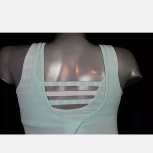IVIVVA LULULEMON GIRL'S SIZE 12 SEAFOAM GREEN TANK WITH BUILT IN STRIPED BRA SKU AA07