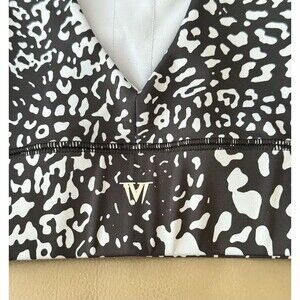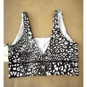 A power sports bra with collagen infused fabric that keeps your skin smooth while wicking away moisture as you work up a sweat. With fun stylish leopard inspired spots this bra will help you power through even the toughest of workouts, while the wide straps and long line silhouette will provide medium to high impact support. Made of 74% polyester and 26% spandex. Size 6. Brand new with tag. Retail cost $75