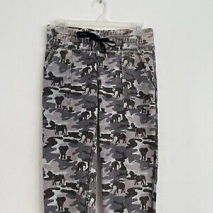 IVORY ELLA Camo Slim Fit Jogger Pants Gray Olive Distressed Pull On Drawstring