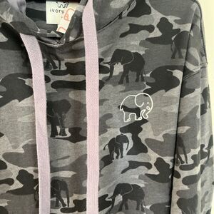 IVORY ELLA Limited Edition Women’s Grayscale Camo Elephant Print Hoodie- Medium