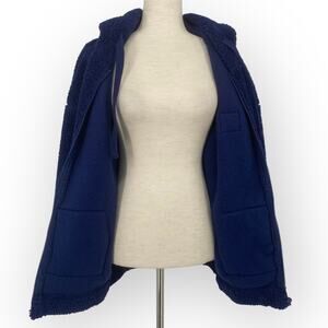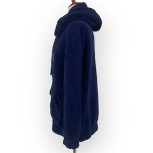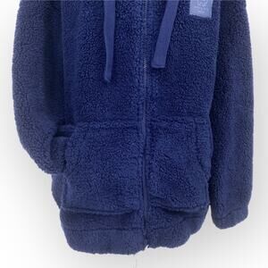 IVORY ELLA NWOT Navy Blue Zip Front Sherpa Hoodie Size Small Cozy Oversized
