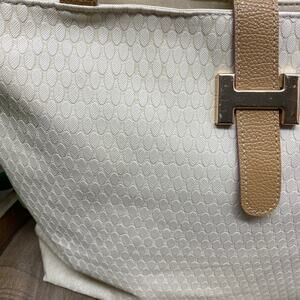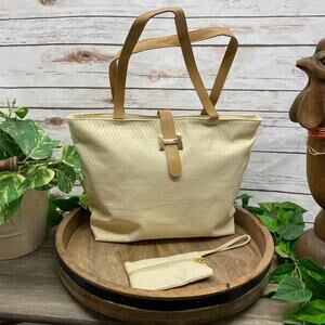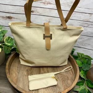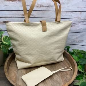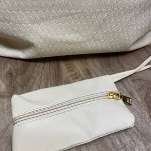 IVORY TEXTURED Tote Bag Matching Coin Key Pouch Purse Collapsible Casual