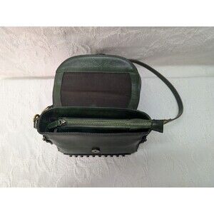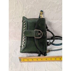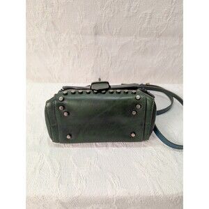 IVTG Green Studded Leather Satchel Purse Crossbody Vintage Silver Gold Handbag