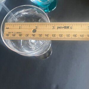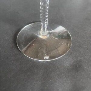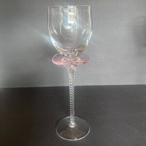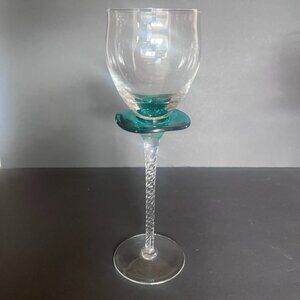 This set of hand-blown wine glasses by IVV features a unique twist stem design. Crafted in Italy, these glasses add elegance to any dinner setting. Each glass has a distinct color accent, making them a standout choice for sophisticated gatherings. Definitely a statement piece! Discontinued. (Note: Priority shipping is recommended for breakable items).
