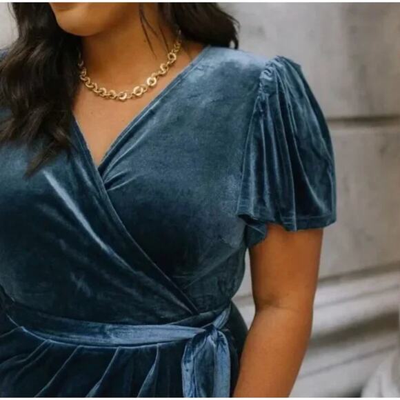 IVY CITY CO Lillie Velvet Faux Wrap Midi Dress Dusty Blue Sz 3X {3A49}