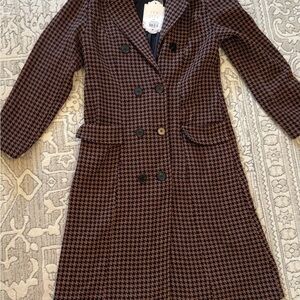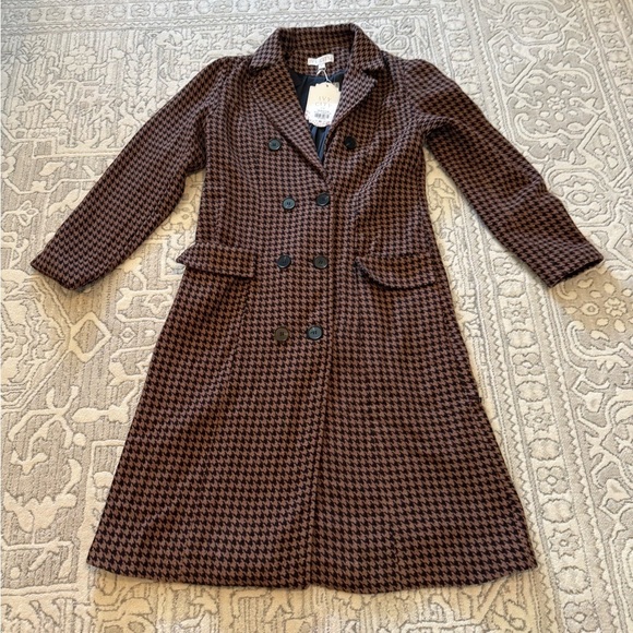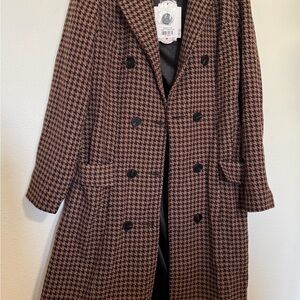 Beautiful trench coat. So cute! Black and brown houndstooth pattern. Had pockets