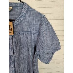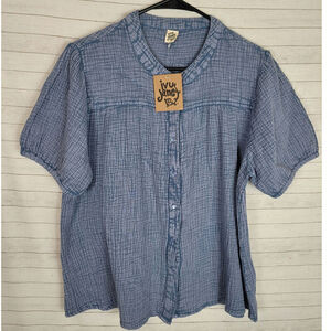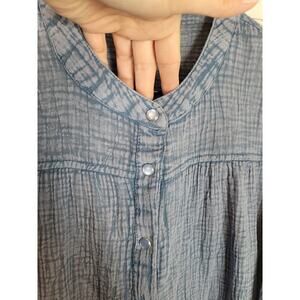IVY JANE GAUZEE SNAP FRONT TOP IN CHAMBRAY BLUE, sz MEDIUM