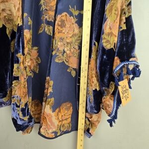 IVY JANE Velvety Floral Flowy Cardigan Navy Womens One Size Bohemian Oversized