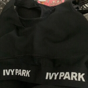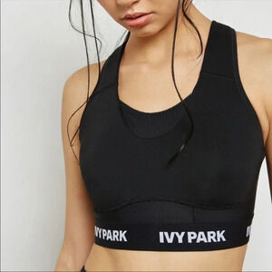 IVY PARK All Black Logo Sports Bra Medium Support Mesh Athletic Yoga XXS