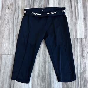 IVY PARK Leggings Sz M black Logo Waist pull on athletic Gym Capri Biker Pockets