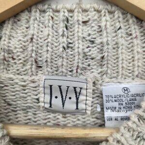 This IVY Vintage Deer Bird Acrylic Wool Blend Sweater in women's size medium is a stylish and cozy choice for the winter and fall seasons. The sweater features a unique animal print design with a bird theme, perfect for adding a playful touch to your outfit. The cable-knit style and relaxed fit make it comfortable for both casual wear and parties or cocktails. Made from a wool blend fabric, this beige sweater also boasts a crew neck and long sleeves for added warmth and style. Perfect for layering or wearing on its own, this vintage piece from Ivy is sure to become a standout addition to your wardrobe.