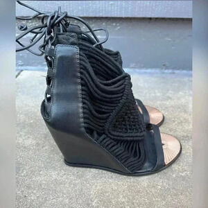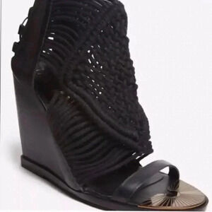 IVY KIRZHNER 'Mykonos' Wedge Black Crochet Wedge Sandals RARE