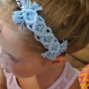 Ivy Mountain Crafter handmade macrame headband for infants. Perfect for newborn pics and super cute just because. Super soft jersey cotton (cotton/spandex blend). Will stretch to fit girls up to 24 months old. Handcrafted by me with love.
