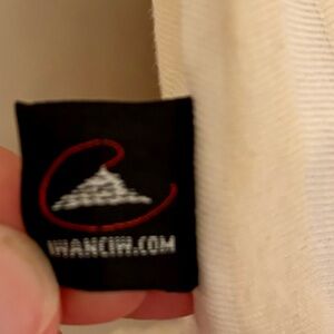 IWANCIW Functional fun wear. Crochet Peter Pan collar and bottom edge. Hand made item. Measures 29” from back collar to bottom, 19” from side to side at the waist. Cream and white.