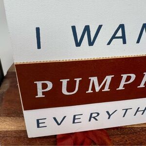 I WANT PUMPKIN EVERYTHING Decor Wooden Shelf Table Word Sign Brown White NWT