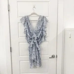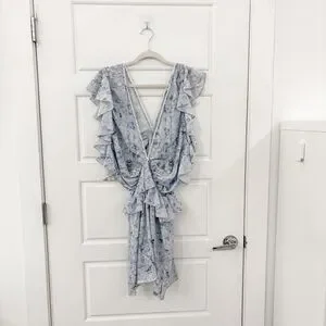 Good condition. True color shown in last photo. Size US 2. Blue print. Boho Bohemian. Open back. Deep v neck.