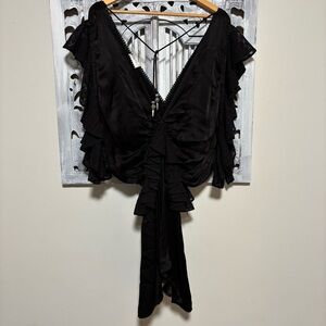 IXIAH Sydney Pronotion Black Satin Ruffle Eyelet V Neck Mini Dress NWT