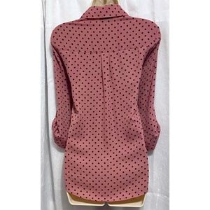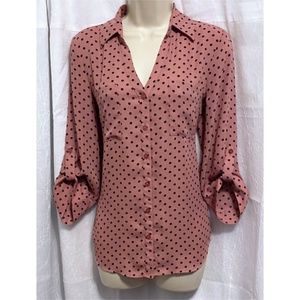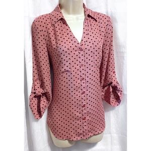 IZ BYER Dusty Rose Black Polka Dot Button Down Blouse sz: M