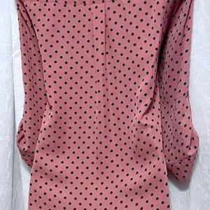 From IZ BYER Collection - Sheer Quarter length sleeve blouse- a Dusty Pink/mauve color with black polka dots. Excellent Condition- just too big for me.
