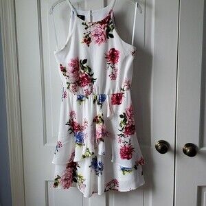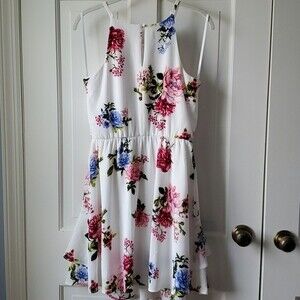 IZ BYER WHITE FLORAL DRESS SZ MEDIUM