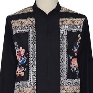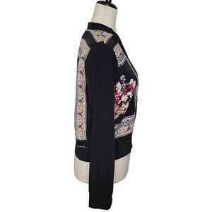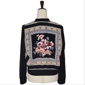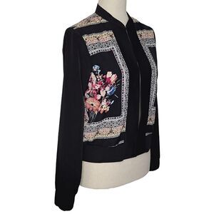 IZ Byer Black Floral Chiffon Open Bomber Style Jacket Size S